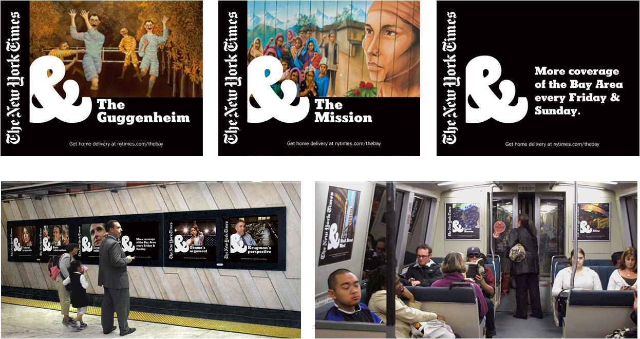 The second largest audience for The New York Times is not Washington, Los Angles or Chicago, it’s San Francisco. This campaign introduced a dedicated section of the Bay Area edition of the TImes covering local arts, culture, dining, politics and public affairs.